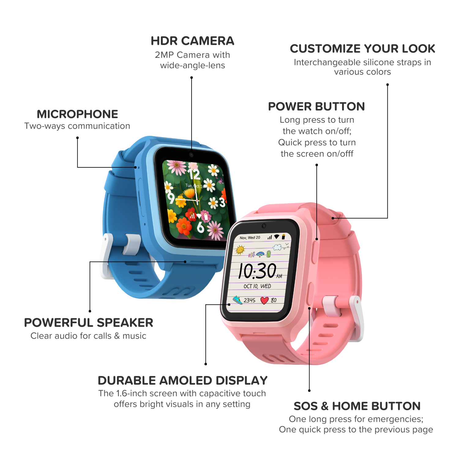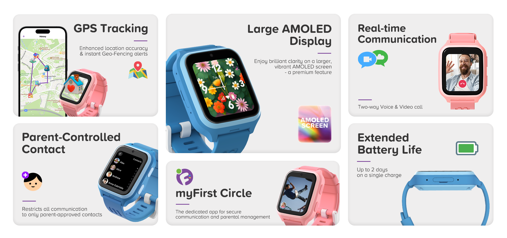 Equipped with a 730mAh battery, the watch provides reliable, all-day usage without constant recharging, ensuring your child stays connected when it matters most.